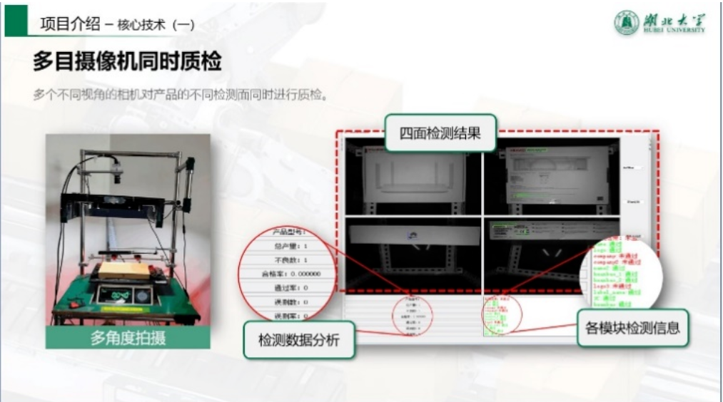 在这样一件优秀产品的背后,有着许多曲折和难忘的故事。起初,大家只是抱着学习的态度,在老师的鼓励下决定尝试一下,他们也没想到这条充满着新奇与挑战道路,一路上起伏不断、困难重重。比如,刚开始的阈值检测法容易受环境光影响,使用白炽灯照明后产生的频闪会干扰实验;比如,检验台在运输的过程中因为破损而无法正常使用;比如,验证测试时厂家发来的样品全部合格,验证试验的结果失去了参考价值;比如,进行多面检测时,硬件只支持单面扫描,检测的时间成本几乎翻倍……