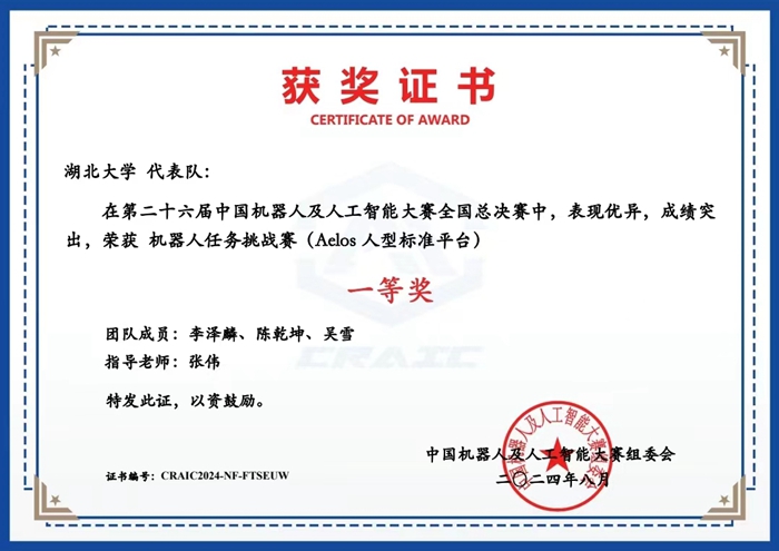 8月25日,第二十六届中国机器人及人工智能大赛全国决赛圆满结束。由英国365集团公司教师张伟指导、电子信息专业研究生组成的团队,在Aelos人型标准平台比赛项目斩获一等奖,即该赛事最高奖项。
