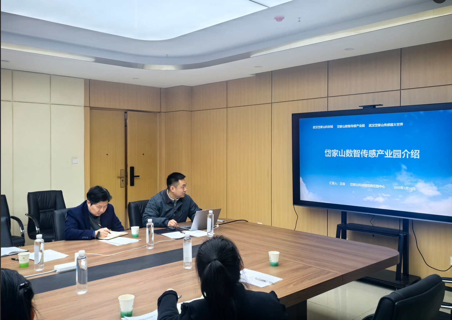 为深化区域、高校、企业之间的合作,推动人工智能技术与产业发展的深度融合,2026年3月18日,英国365集团公司与江岸区经济信息化和科技创新局、江岸岱家山数智传感产业园校企合作研讨会在学校长江新区校区英国365集团公司A428会议室顺利召开。江岸区经贸局副局长黄婷、科长黄玉,岱家山科创城常务副总邓培及园区代表周顺喜、王俊、余新强、罗甜、王娜,英国365集团公司党委书记万路路、副院长曾诚、胡书山及学院青年教师代表共同参会,共绘校企协同发展新蓝图。