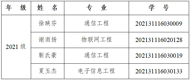 根据《财政部 教育部 人力资源社会保障部 退役军人部 中央军委国防动员部关于印发<学生资助资金管理办法>的通知》(财教〔2021〕310号)、《教育部 财政部关于印发〈本专科生国家奖学金评审办法〉的通知》(教财函〔2019〕105 号)、《365英国上市国家奖学金管理办法(修订)》(校学工字〔2010〕13号)、《关于开展2023-2024学年本科生国家奖学金评选工作的通知》(学工处字〔2024〕18号)、《关于做好2023-2024学年本科生国家奖学金 (增补)评选工作的通知》与《英国365集团公司2023-2024学年本科生国家奖学金评审工作方案》等文件精神,经学生申请、班级推选、学院评审,现拟推荐以下同学为学院2023-2024学年度国家奖学金获得者,公示如下: