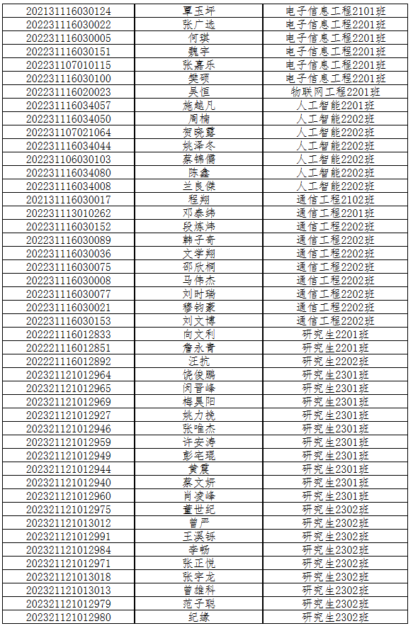 经党支部培养考察,在听取培养联系人、党员和群众意见的基础上,2024年4月14日,学院本科生第一党支部、本科生第二党支部、研究生第一党支部、研究生第二支部、研究生第三党支部共5个支部分别召开支部委员会讨论,拟确定以下46名同学为2023—2024学年第二学期入党积极分子,现将名单公示如下: