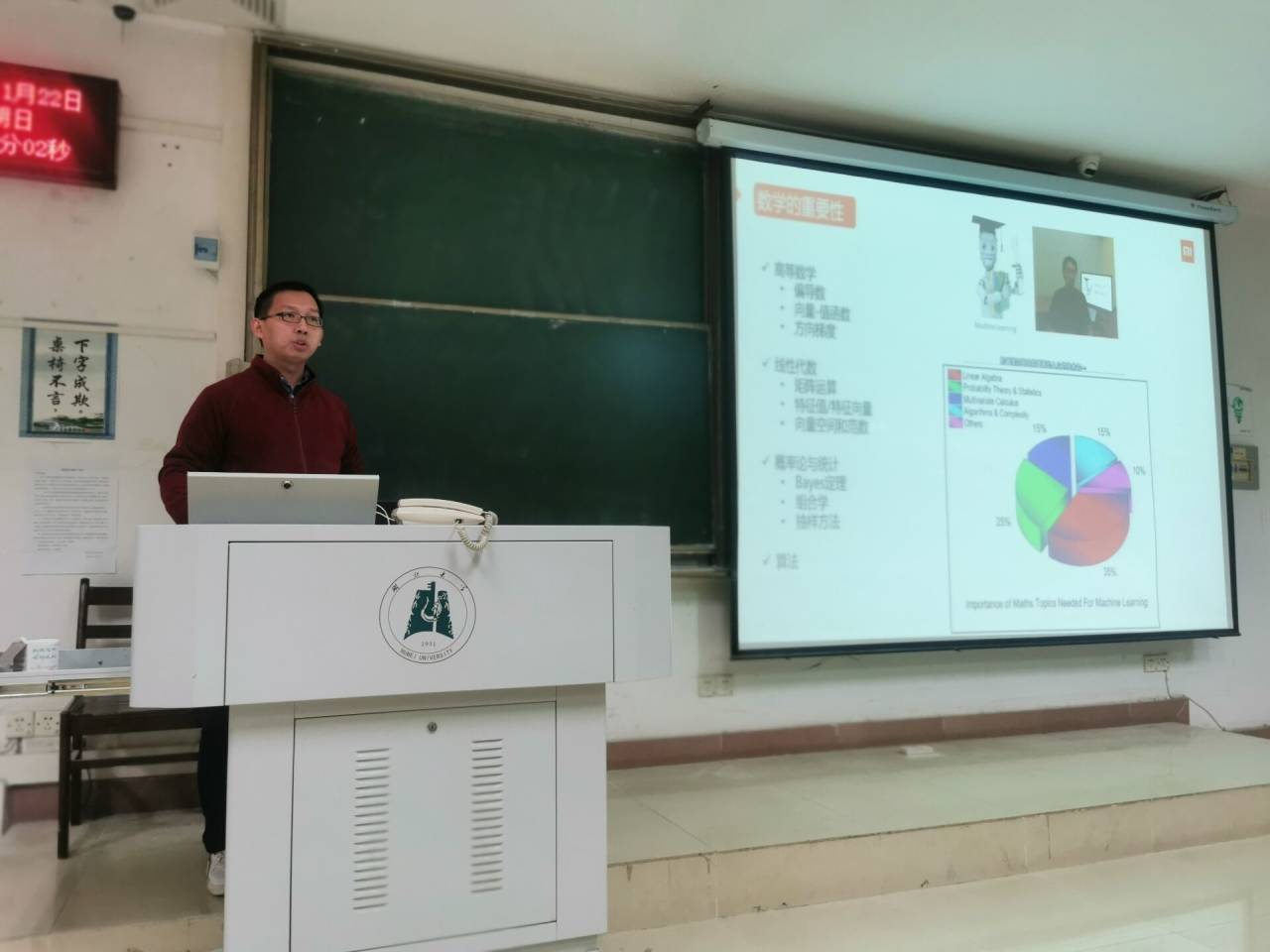 11月22日晚,“人工智能与大数据技术”的主题讲座在教四307举行。本次讲座由2018级大数据班主任熊琳主持,主讲人为小米大数据部武汉用户画像负责人徐函秋,2018、2019级大数据专业同学参与此次讲座。期间,徐函秋着重介绍了人工智能与大数据的发展、技术前沿,并对该技术在行业以及小米中的应用进行了分享,最后对未来想从事大数据行业的同学给予了一些建议。