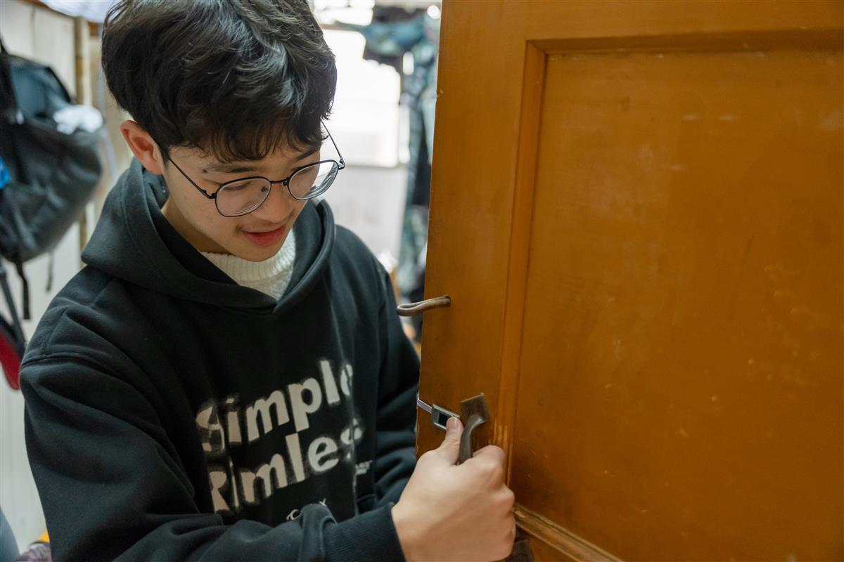 “这双一次性筷子为什么会粘在舵机与门锁之间呢?”周围旁观的学生细细打量着眼前这个“新鲜玩意儿”,好奇地问道。危杰解释说:“由于马达转动拉动门锁时会使舵机向右偏移,所以我想到这个办法使之更好地固定住。”