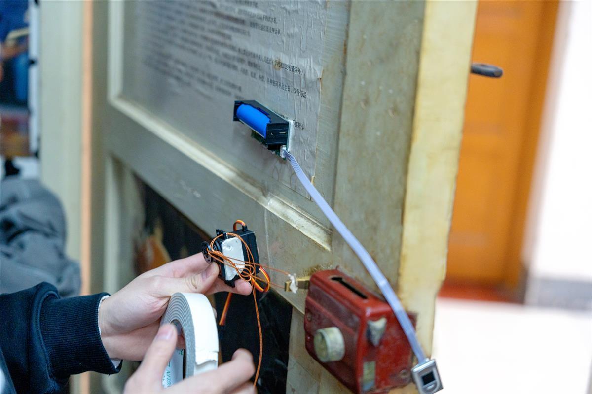 危杰讲述自己是在机缘巧合下在B站刷到自制指纹锁的办法,正好自己与室友们也常常忘记带钥匙出门,于是就萌生了给寝室制作一个指纹锁的念头。危杰分享道:“起初,我还有点担心指纹锁的制作成本问题,但其实最终我搞定指纹锁的全部制作只花费了不到一百元。”