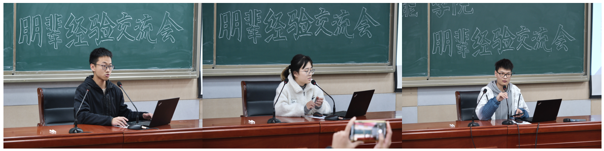 随后,三位同学前往学生宿舍活动室开展座谈交流,分别从同学们关心的学习经验、就业考研规划、科研竞赛训练以及日常生活小技巧等问题做分享解答。现场前来咨询的同学络绎不绝,活动效果取得良好成效。