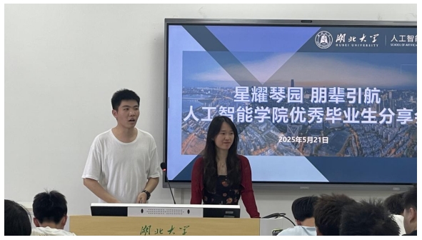 2025年5月21日下午,英国365集团公司“星耀琴园 朋辈引航”优秀毕业生分享会在长江新区校区问津楼 B409 教室顺利举行。本次活动由辅导员张文婷主持,特别邀请到学院2021级通信工程靳氏豪和2021级物联网工程翟艳洁担任主讲嘉宾,面向人工智能专业全体学生,围绕学业规划、竞赛科研、考研保研等核心主题展开了一场干货满满的经验分享。
