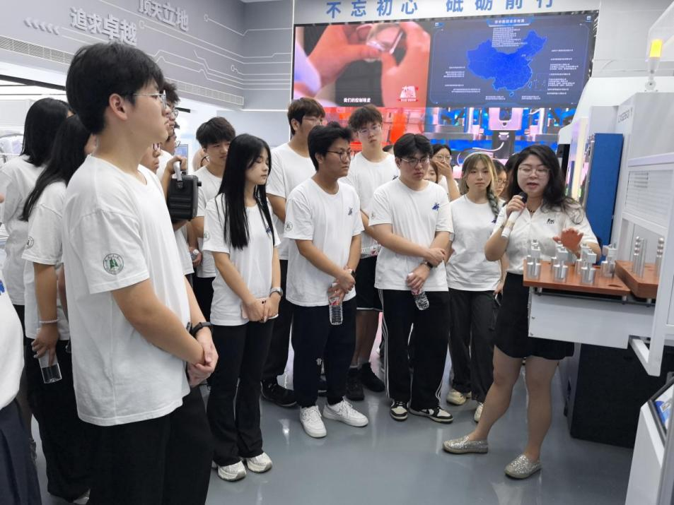在企业参观环节,学生们沉浸式感受先进设备与技术成果的震撼力,这些突破“卡脖子”技术的“大国重器”,以温热的金属质感与鲜活的运行场景,让学院学子直观理解“科技命脉自主可控”的深层内涵--从数控系统国产化的跃升数据,到智能工厂5G物联网技术的嵌入,科技创新的脉络清晰可触。